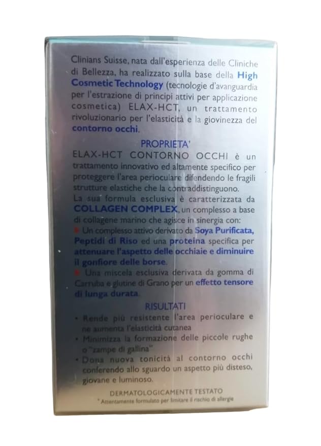 - ELAX-HCT a revolutionary treatment for elasticity and youth of face and eye contour.