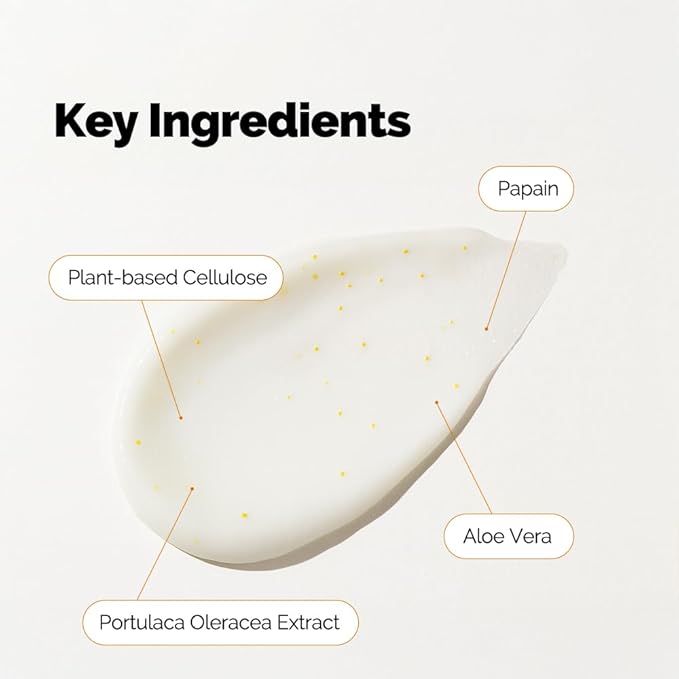 - Cellulose Scrubs and Natural Enzyme Complex – Dual-Action Refining Formula A powerful blend of cellulose scrub particles and natural enzymes that deeply cleanse and gently polish the skin, revealing a softer, brighter surface.