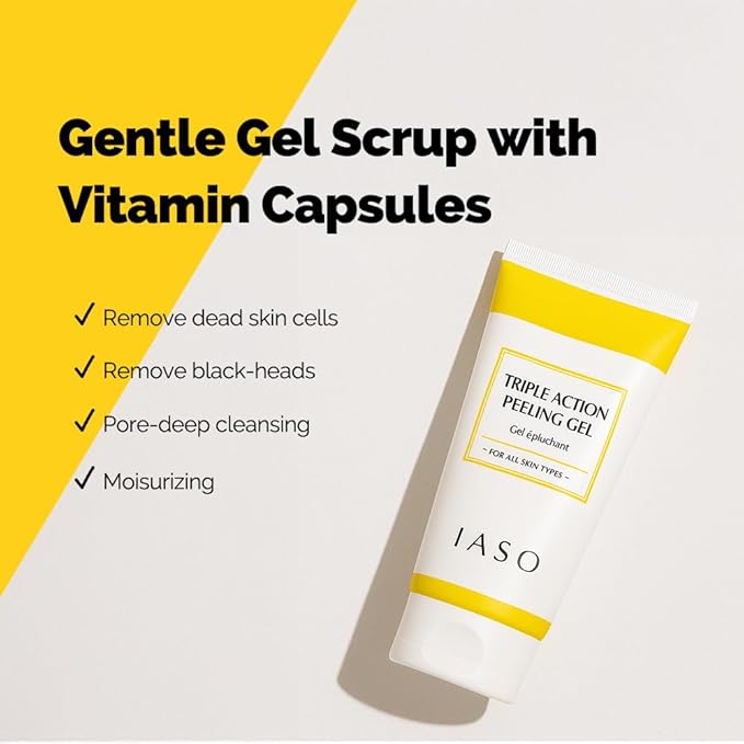 IASO Triple Action White Peeling Gel | Exfoliating Gel for Face, eep Pore Cleanse, Tone-Up Effect & Smoother Skin Texture, Korean Skin Care, 5.07 oz