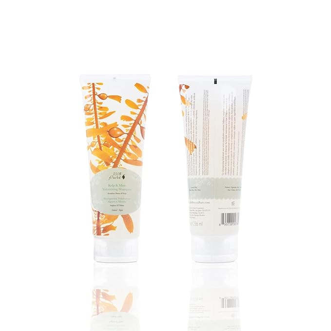 100% PURE Kelp & Mint Volumizing Shampoo Purifying Hydration & Deep Detox - Botanical Body Boost for Dry, Damaged Thinning Hair, Promotes Healthy Growth for Women & Men - Sulfate Free - 8 Fl Oz