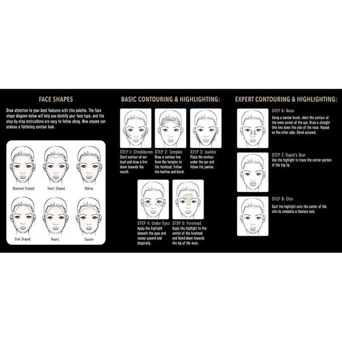 - DEFINE YOUR FEATURES: Contour your cheekbones, jawline, forehead, and nose with 3 precise shades