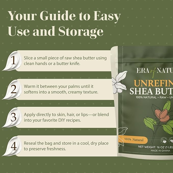 - PREMIUM PACKAGING FOR FRESHNESS: Packaged in high-quality Kraft Foil bags, our raw butter stays fresh and potent. This thoughtful packaging ensures you're getting the highest quality trusted by both professionals and DIY skincare lovers.