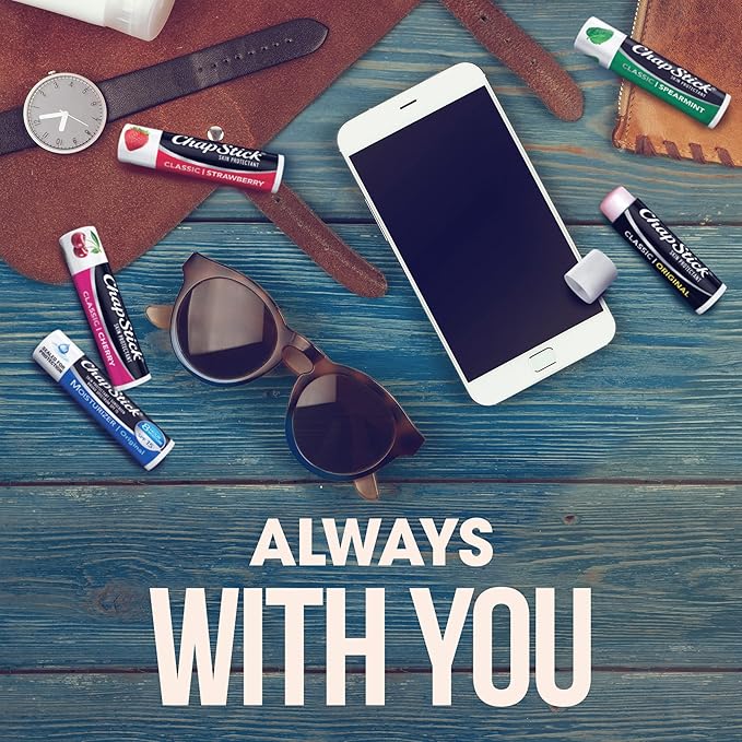 - Pack includes: ChapStick Original, Strawberry ChapStick, Spearmint, ChapStick Moisturizer Original with SPF 15, and Cherry lip balm tubes