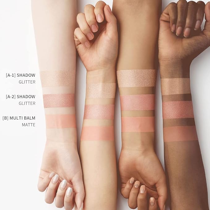 - All-in-one multi-use palette with versatile balm and powder formula with matte to glitter finishes that can be used on eyes, cheeks and lips