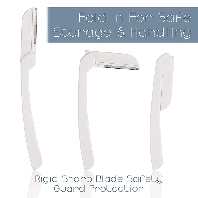 - ✔ COMPACT, SAFE AND FOLDABLE – Do not worry about sensitive skin. The non-invasive dermablade hair remover is the safest for personal home skin care use and by beginners for face , eye brow, upper lip areas. The small, foldable blade makes it easy to safely transport the razor in any makeup bag or purse so it is there to use whenever a touch-up is required.