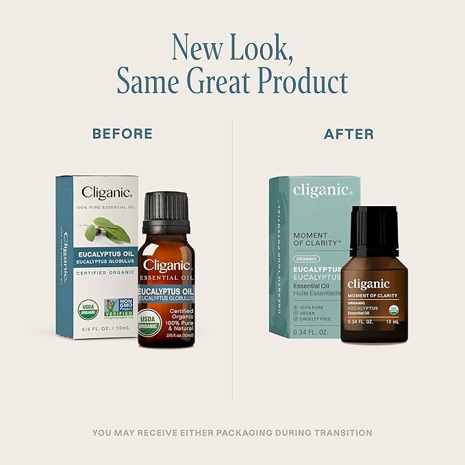 Cliganic USDA Organic Eucalyptus Essential Oil, 100% Pure | Natural Aromatherapy Oil for Diffuser Steam Distilled | Non-GMO Verified (Packaging May Vary)