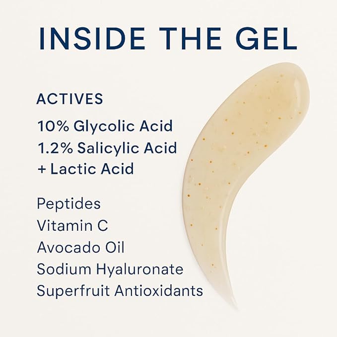 - EXFOLIATING FACE WASH - Anti Aging face exfoliator gel that contains 10% Glycolic acid with Lactic Acid. Enhanced with alpha-hydroxy acids (AHA) & beta-hydroxy acid (BHA). This salicylic acid cleanser is able to deeply cleanse, penetrate, unclog & minimize pores of irritants and bacteria. Brightens and helps reduce acne, wrinkles and fine lines.