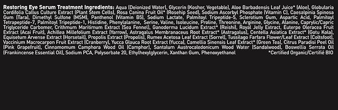 - Key Ingredients: Natural & Certified Organic ingredients, including hyaluronic acid, protein peptides, vitamin C, caffeine, MSM, and aloe.