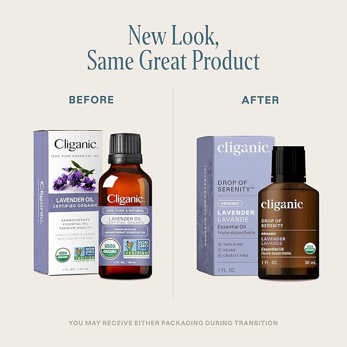 Cliganic Organic Lavender Essential Oil, 1oz - 100% Pure Natural Undiluted, for Aromatherapy Diffuser | Non-GMO Verified (Packaging May Vary)