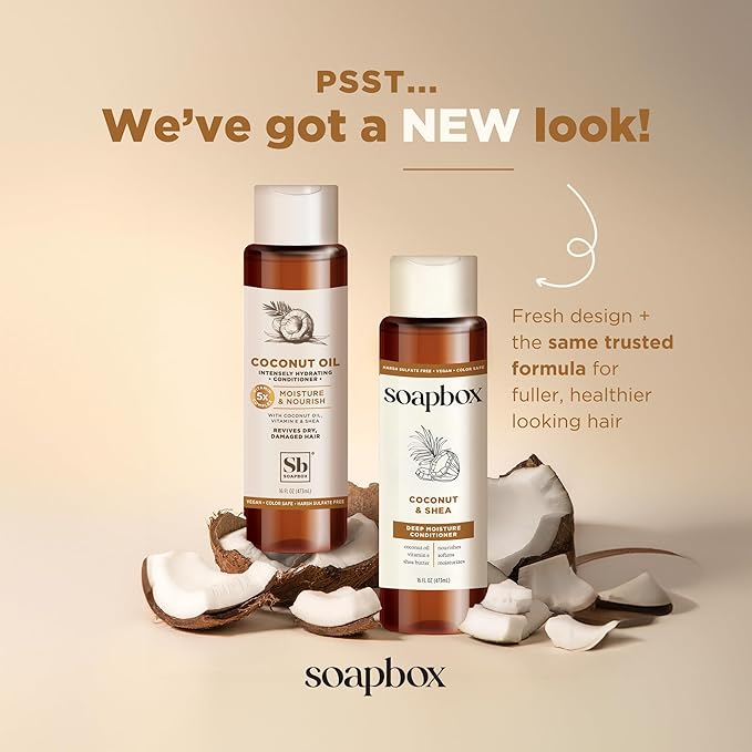 Soapbox Coconut Oil Conditioner, Sulfate & Paraben Free, Silicone Free, Color Safe, and Vegan Hair Conditioner (33.8 Ounces)
