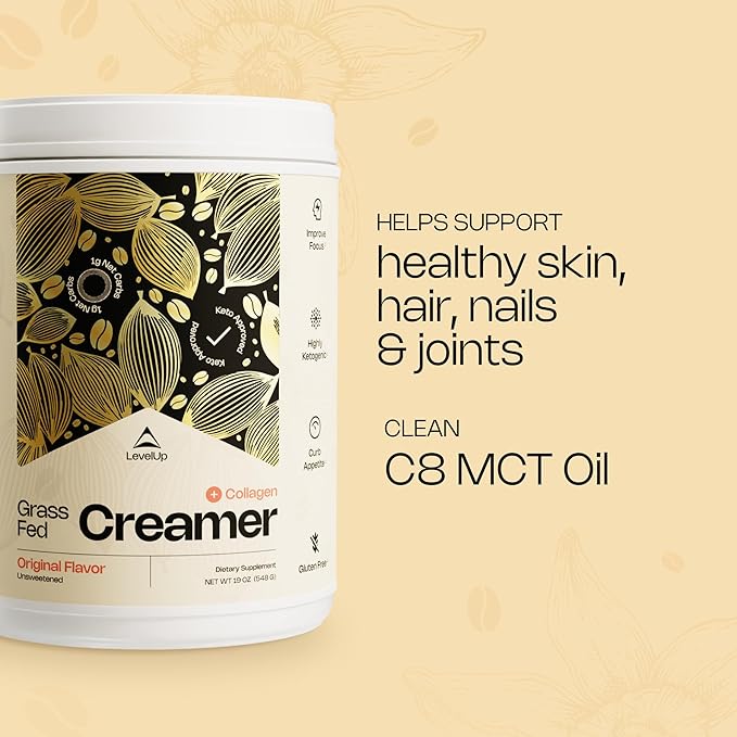 LevelUp Creamer, with Energizing MCT Oil and Collagen Peptides, Keto Coffee Creamer, Supports Natural Energy & Ketone Production - Original (Unsweetened) 7 oz