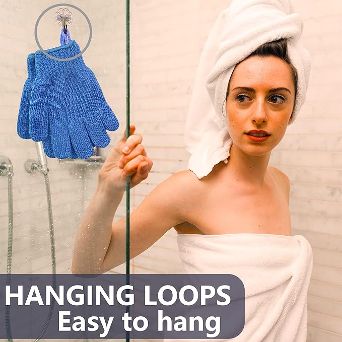 - โ IMPROVES SKIN TEXTURE - also works with different skin textures, pick the one that works best for you and your skin. repeated use continues to soften rough, dry skin.(exfoliating gloves with loop) exfloting wash glove. exfoiling body scrub. glove exfoliator. exfoiling body scrub. bathing gloves for men women. body scrub gloves. shower gloves for women.