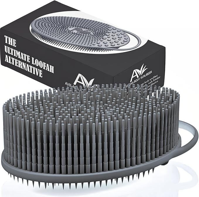 Avilana Silicone Body Scrubber – Gentle Shower Brush & Loofah Alternative- Food Grade & Lab Tested – Fast-Drying, Hygienic, BPA-Free Silicone Body Gentle Exfoliator (Gray, Exfoliate)