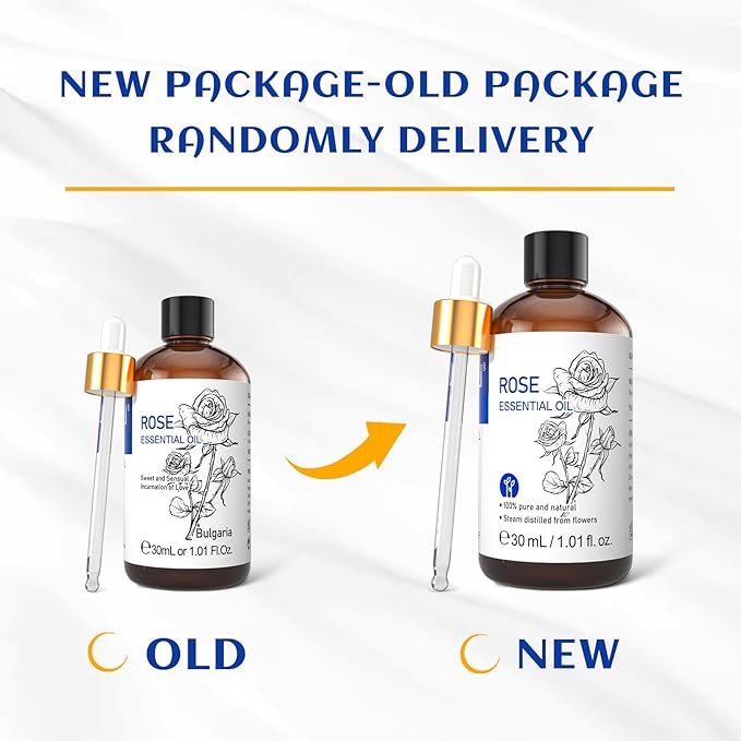 HIQILI Rose Essential Oil 1 Fl Oz, 100% Natural Therapeutic Grade for Aromatherapy, Diffuser, Skin Care, Massage, Includes Premium Quality Glass Dropper