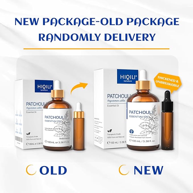 HIQILI Patchouli Essential Oil,100% Pure & Natural for Homemade Perfume, Sooth Skin, Nourish Hair at Home with Diffuser, Gift for Hippie Friend -100ML