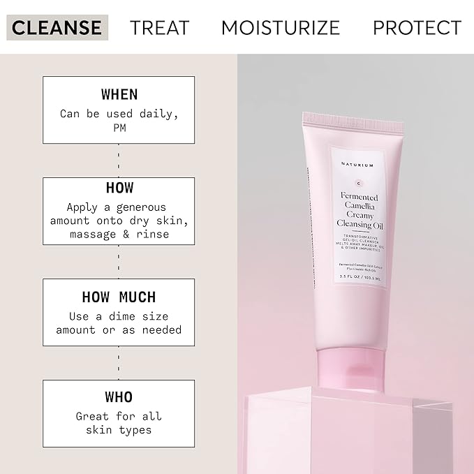 Naturium Camellia Creamy Cleansing Oil, Fermented Camellia Oil & Extract Plus Linoleic-Rich Oils, 3.5 oz