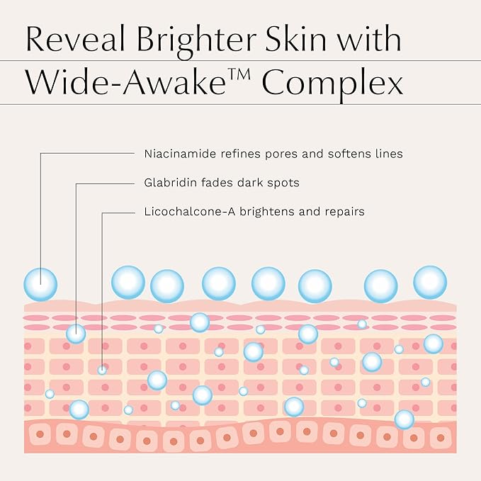 - BRIGHTENING & TIGHTENING: Our Wide-Awake complex blends liquorice extract and niacinamide for BRIGHTENING AND TIGHTENING effects of our eye serum for bags under eyes. The compounds in liquorice help to fade dark spots, while niacinamide refines pores and softens lines.