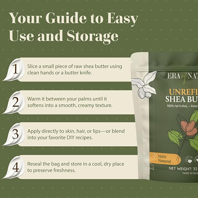 - PREMIUM PACKAGING FOR FRESHNESS: Packaged in high-quality Kraft Foil bags, our raw butter stays fresh and potent. This thoughtful packaging ensures you're getting the highest quality trusted by both professionals and DIY skincare lovers.