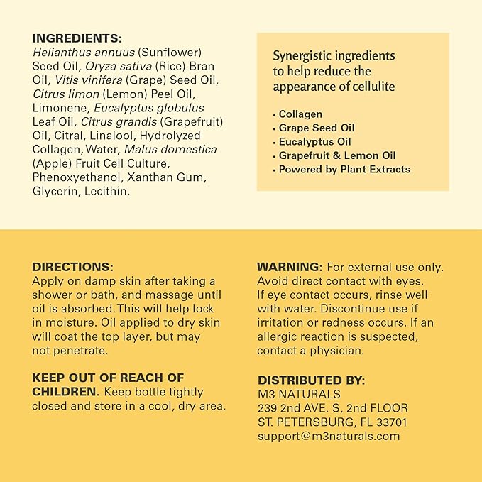 - Spa-Like Body Care at Home – Now in a Generous 16oz Size: Treat yourself to a luxurious full body massage oil, now available in a larger 16oz bottle—perfect for long-lasting self-care rituals. Designed to help smooth the appearance of uneven skin texture, soften skin, and soothe sore, tired muscles. For even better results, pair it with our M3 Naturals dry brush or massage tools to enhance absorption and leave your skin feeling smoother, more radiant, and deeply refreshed.