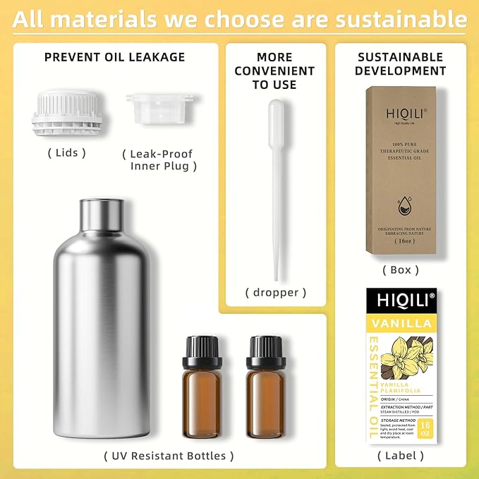 HIQILI 16 Ounces Vanilla Essential Oil, Strong Fragrance for Body Lotion, Candle Making, Soap, Aromatherapy -16 Fl Oz