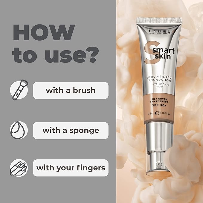 LAMEL Smartskin Serum Tinted Foundation - Hydrating & Nourishing - Hypoallergenic & Skin-Caring - Color Correcting - Anti-Aging Formula with Hyaluronic Acid, 404-1,18 fl.oz