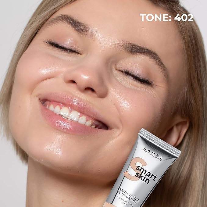 LAMEL Smartskin Serum Tinted Foundation - Hydrating & Nourishing - Hypoallergenic & Skin-Caring - Color Correcting - Anti-Aging Formula with Hyaluronic Acid - 402, 1,18 fl.oz