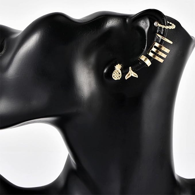 Bohemia Pineapple Mermaid Tail Studs Earrings Gold Wide Cuff Earrings Fake Helix Ear Cuff Earrings Gold Cartilage Clip on Wrap Earrings Non pierced Multiple Earrings Set Set for Women and Girls