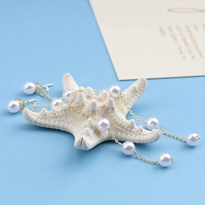 Boho Pearl Dangle Earrings Gold Pearl Drop Stud Earrings Long Pearl Tassel Earrings Vintage Pearl Linear Earrings Jewelry for Women and Girls