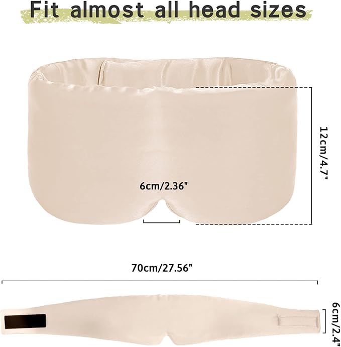 - Large Size & Adjustable: The eyemask is with Large Size to fit most head circumference and side-sleepers. You may adjust the strap to your suitable length via the Velcro, and the mask will no shift off easily. You wonβt feel any pressure on your face or your eye balls with this sleep face mask, and we believe that you will want to use it in the long term