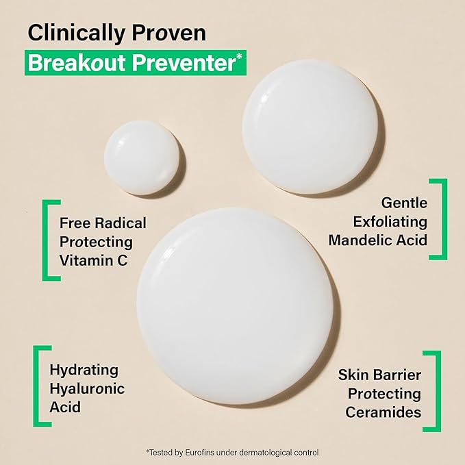 - All-Day Hydration + Skin Barrier Protection: Powered by a complex of Mandelic Acid, an effective but gentle exfoliating acid, along with Niacinamide, Hyaluronic Acid and Ceramides to deeply hydrate, + Vitamins E + C to help shield the skin from environmental aggressors