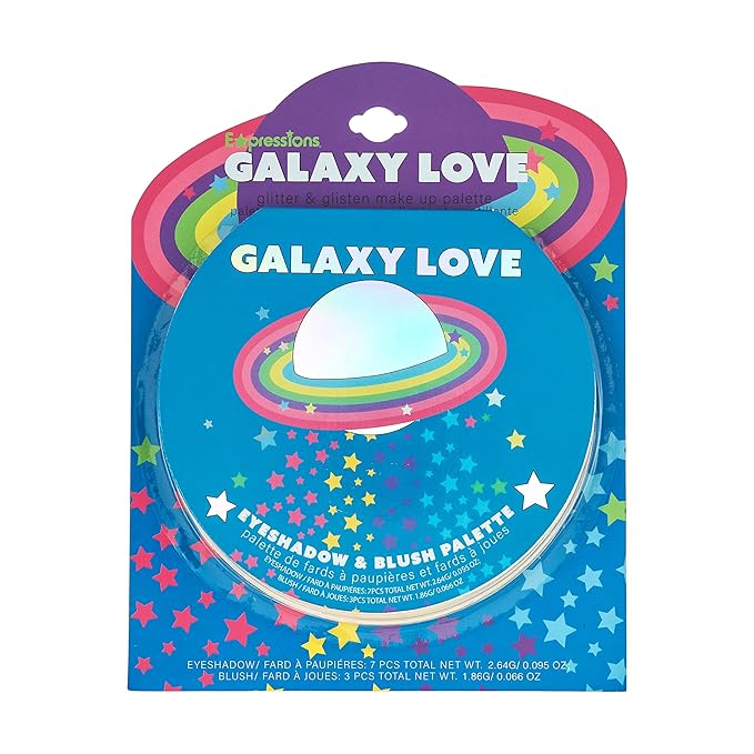 Expressions 10 Color Eyeshadow Palette & Blush Makeup Novelty Beauty Set, Fold Out Compact with Mirror, Washable, Non-Toxic,Galaxy Love Glisten & Glitter Makeup Palette