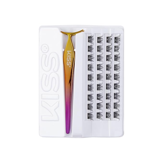 KISS imPRESS Falsies Self Adhesive Eyelashes, Press On Lashes, 12mm-14mm Glam Volume Lashes, Black, No Glue Needed, Invisible Band, 36 Lash Clusters & Non-Stick Applicator - Voluminous