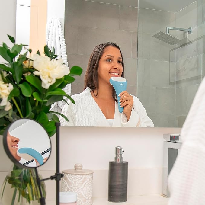 - 💦 ERGONOMIC DESIGN FOR EASY HANDLING: Our Ice roller face massager with two interchangeable heads is easy to hold and use; Apply under your eyes for eye puffiness relief, or over your face to reduce redness and pores