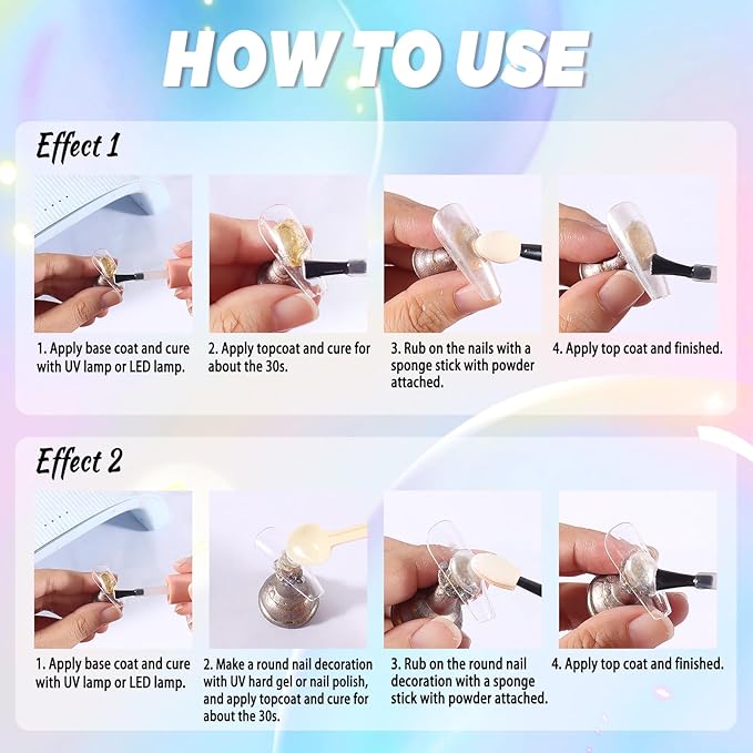 - Easy to Use: Be it, polish gel nail art beginners or nail charms professionals can be easily used for the best results. The beginners just apply with a sponge stick over a topcoat, and cure for about 30s to get perfect nail art. For the nail stuff, it's a tech must-have, is also a perfect nail decoration kit.
