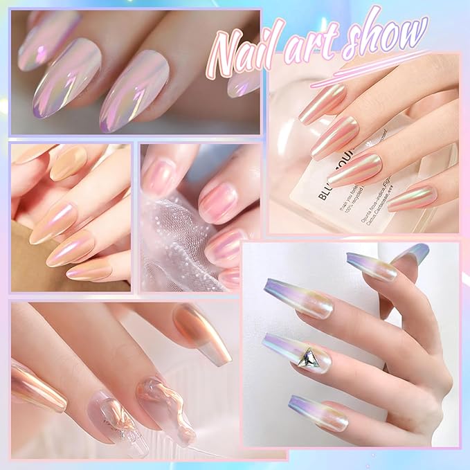 - Wide Application: The shell pearl nail powder is suitable for natural nails, UV gel nails, acrylic extension, poly gel nails, etc. You can make the effects of the mirror, ice transparent, bubble, shell, water ripple, opal, and so on. Perfect for daily use, party, wedding, holiday bash, and nightclubs. The unicorn chrome nail powder is a sparkling shellac nail kit, which is good for nail supplies.