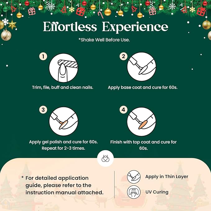 - Included Components : Base Coat, Gel Nail polish, Top