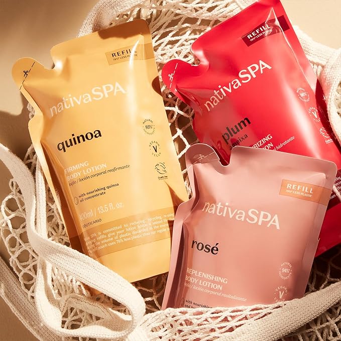 Nativa SPA by O Boticário, Plum Moisturizing Body Lotion Refill Pack, Fragranced Moisturizer Enriched with Purified Quinoa Drops to Boost Hydration, 13.5 Ounce