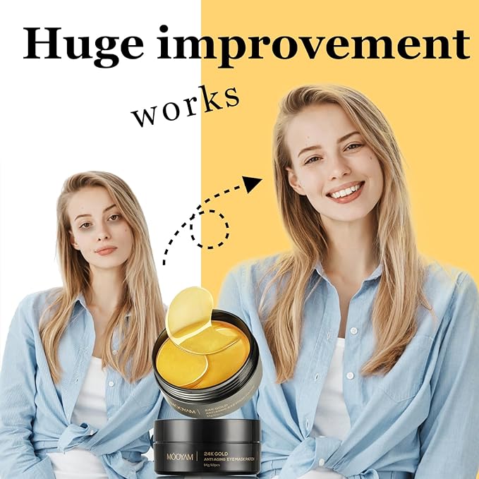 - 24K Gold Effect: gold eye mask is one of the most popular eye masks on the market, not just only like this eye mask's gold color, itβs most important this gold under eye patches have a huge improvement for problematic skin. Especially when it comes to anti-aging.