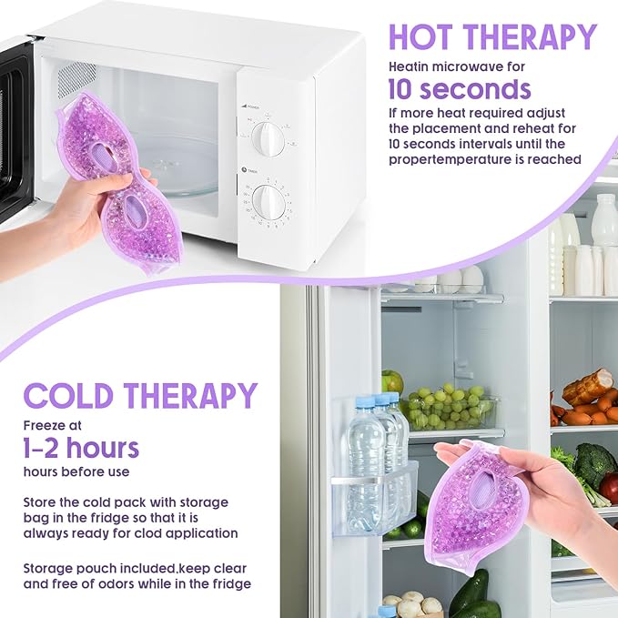 - Hot and Cold Usage: for cold compress, you can chill cooling eye mask for sleeping in the refrigerator for about 40 to 60 minutes which can be based on personal preference; The cooling eye mask for sleeping is packaged in a resealable bag for clean storage and extended product lifespan, as well as to prevent absorption of refrigerator odors; For a heat compress, simply heat the mask in the microwave on medium high heat for about 10 seconds each time