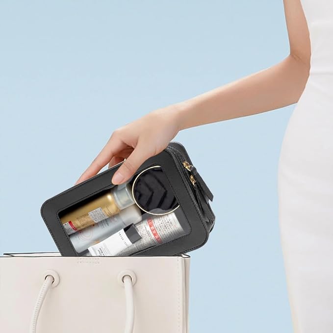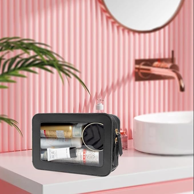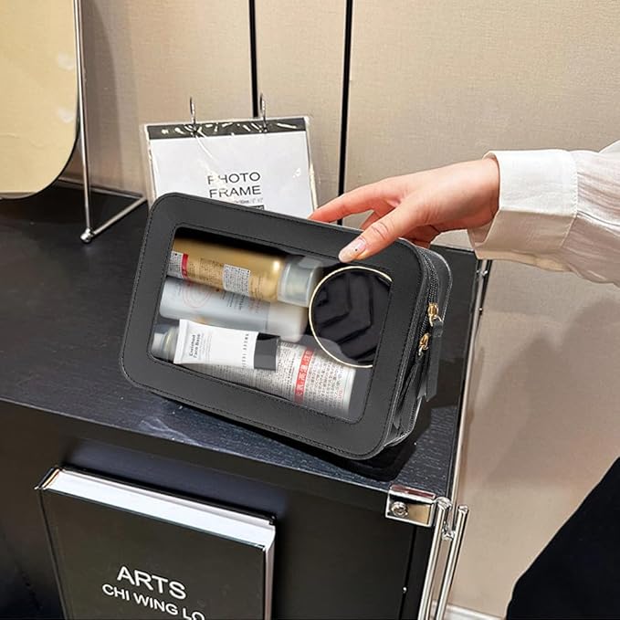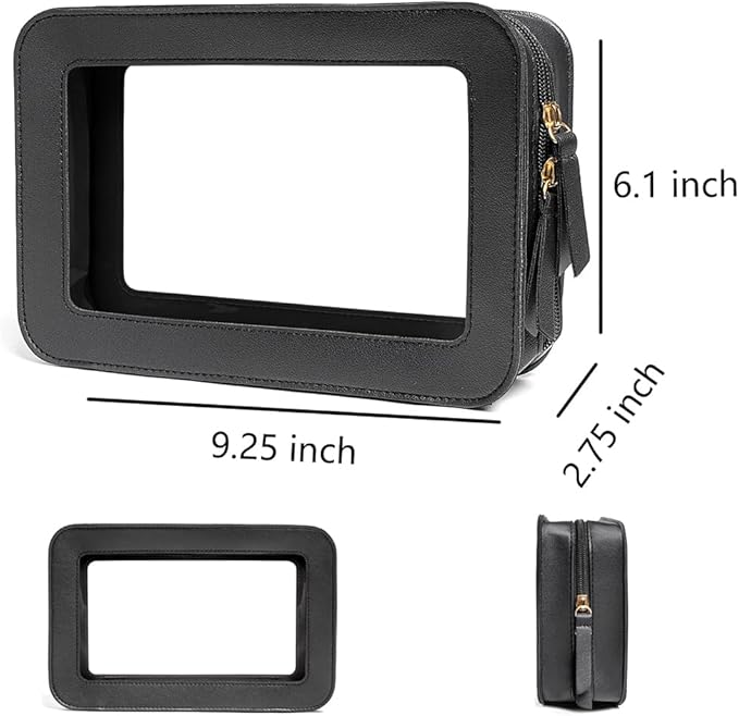 - Clear Design: Our clear toiletry bag is sleek and minimalistic look for your makeup accessories collection. And is designed with a clear PVC window,all items are clear at a glance, and you can quickly choose the cosmetics you need. Size:9.44“*6.1”*2.75“