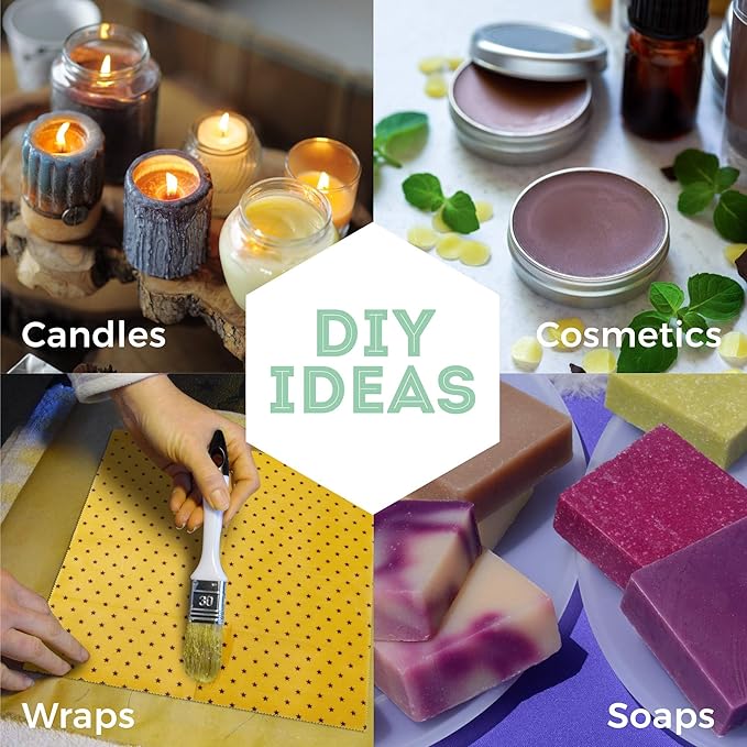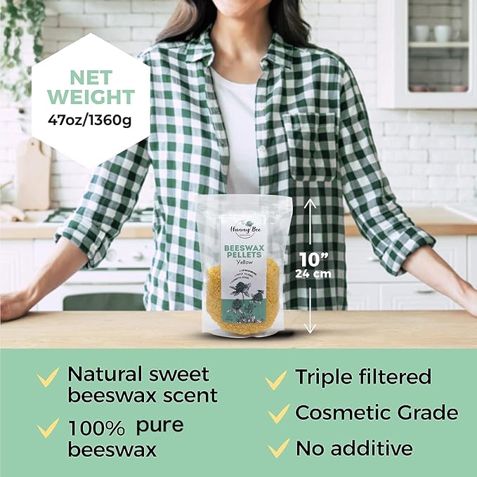 - 🐝 [Premium Quality] Our beeswax is triple-filtered to ensure its purity, making it the perfect choice beeswax food grade and beeswax for skin care products. Its natural scent make it a unique and sustainable alternative to traditional wax products【Why should you use this?】Our premium quality natural beeswax pallets and bees wax melts are handcrafted to perfection, providing a long-lasting and authentic aroma for your home or personal projects