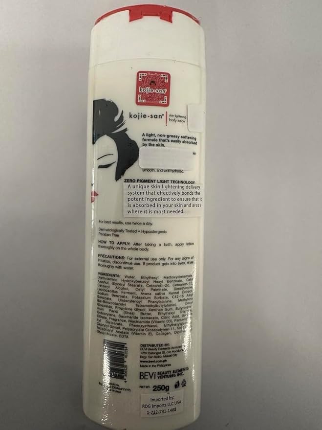 - Kojie San Body Lotion with Environmental Protection (250ml): New from Kojie San, this lotion is enriched with natural kojic acid. Now, combined with natural plant extracts & and environmental protection, it helps reduce uneven skin tone.