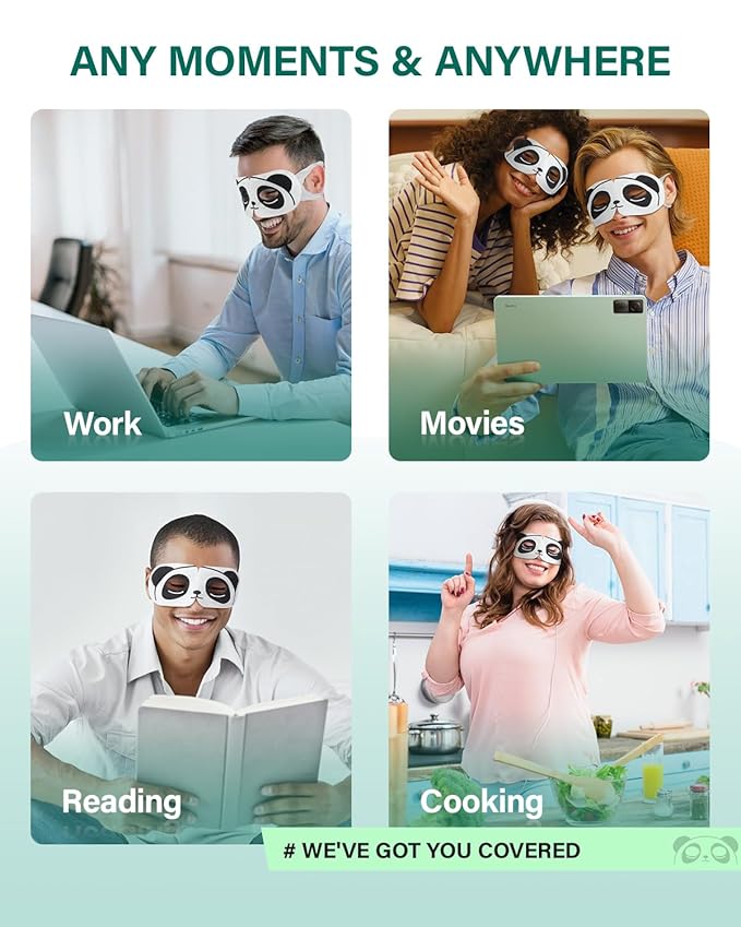 - 【Advanced 3D Visible Eye Patch】Our panda steam eye mask allows you to wear at anymoments & anywhere. Evenly warms around your eyes, avoid the eyeballs.