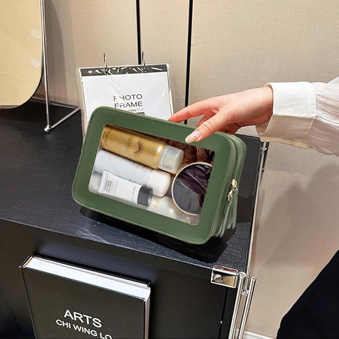• Clear Design: Our clear toiletry bag is sleek and minimalistic look for your makeup accessories collection. And is designed with a clear PVC window,all items are clear at a glance, and you can quickly choose the cosmetics you need. Size:9.44“*6.1”*2.75“