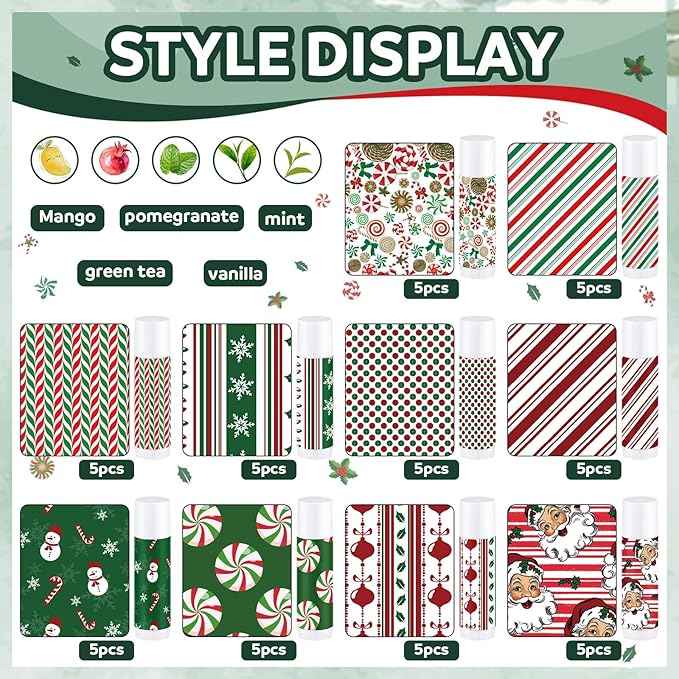 - Assorted Flavors: these candy themed lipsticks are designed with 5 different flavors, including mint, vanilla, green tea, pomegranate and mango, sufficient for you to choose according to your preference, and each lipstick is labelled, convenient for you to recognize
