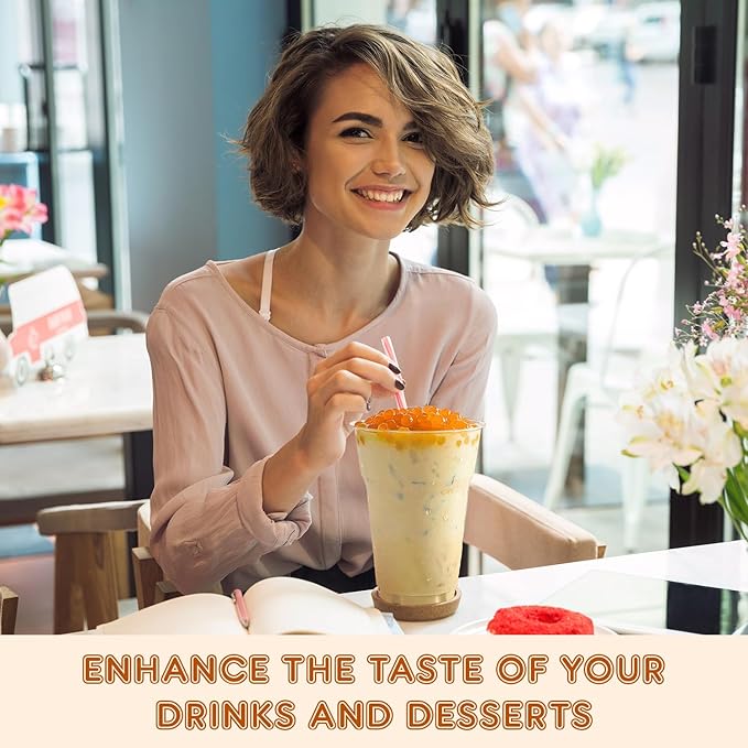- 𝐈𝐝𝐞𝐚𝐥 𝐓𝐨𝐩𝐩𝐢𝐧𝐠: Fanale Drinks Popping Boba Pearls are the ideal topping for desserts and drinks. They are a perfect addition to your smoothie, iced coffee, soft drink, shake, ice cream, frozen yogurt, and other desserts for extra flavor.