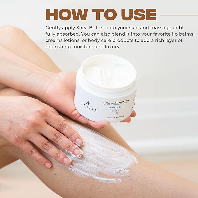 AZMERA Handcrafted Whipped Shea Body Butter – Luxurious Orchid Scented Moisturizer for Dry, Sensitive Skin with Argan Oil & Vitamin E – Vegan, Non-Greasy Skincare – 8.82 oz