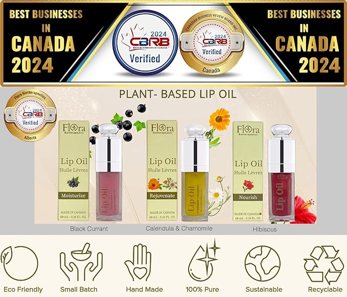 FLORA BLACK CURRANT LIP OIL | ORGANIC, PLANT-BASED | MOISTURIZE | 10 ML | MADE IN CANADA