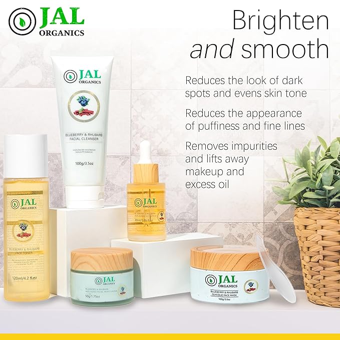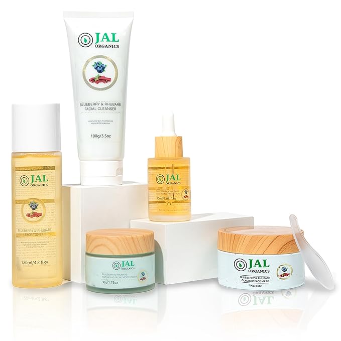 - π° Maximize Your Skincare Investment with A Smart Choice: Investing in the Jal Organics 5-piece Blueberry Rhubarb Skincare system is not just a purchase, but a smart move. Enjoy a comprehensive skincare routine without breaking the bank, thanks to our perfect blend of high-quality ingredients and multiple products. Witness the transformative effects of our premium skincare system as you indulge in cost-effective skincare luxury.