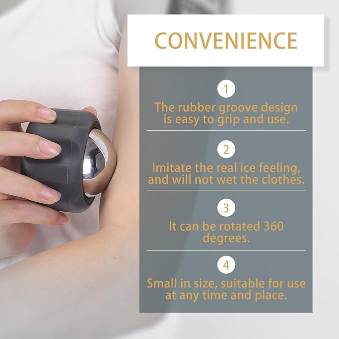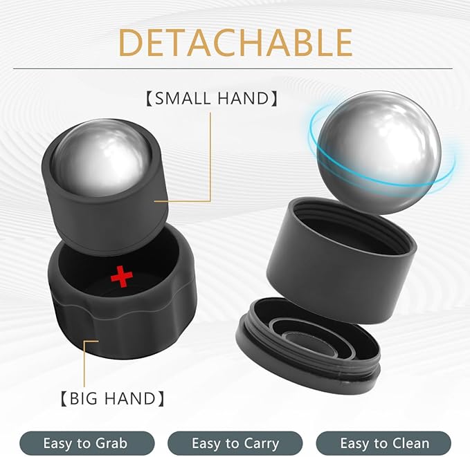 - Multifunctional Massage Ice Ball-The cold massage roller ball is made of stainless steel and a sturdy plastic base and can roll 360 degrees, the cold massage roller ball is also detachable and rolls in any direction you want, perfect for hitting hard-to-reach pain points, including those hard-to-reach areas, providing precise massage for lymphatic drainage. The cold massage rolling ball can also be used with massage oil, essential oils or aromatherapy lotion.